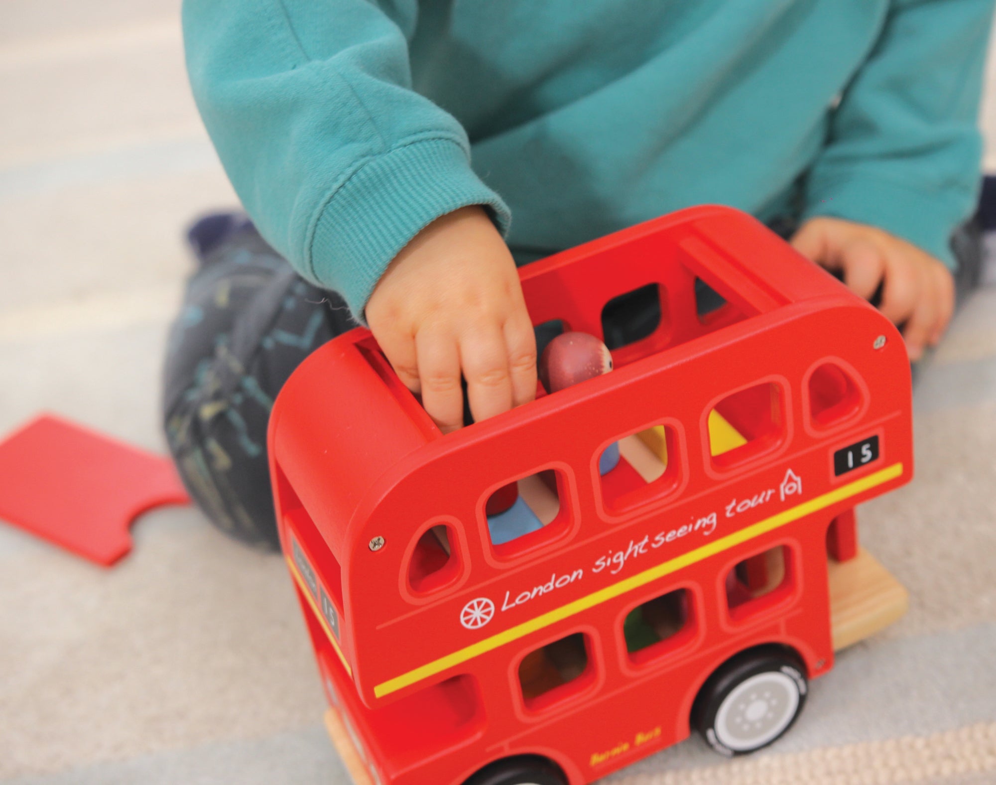 IIJ8012 A traditional-style American school bus. Match the wooden peg passengers by colour or number to their seats. With removable roof and top floor to allow easy access for...