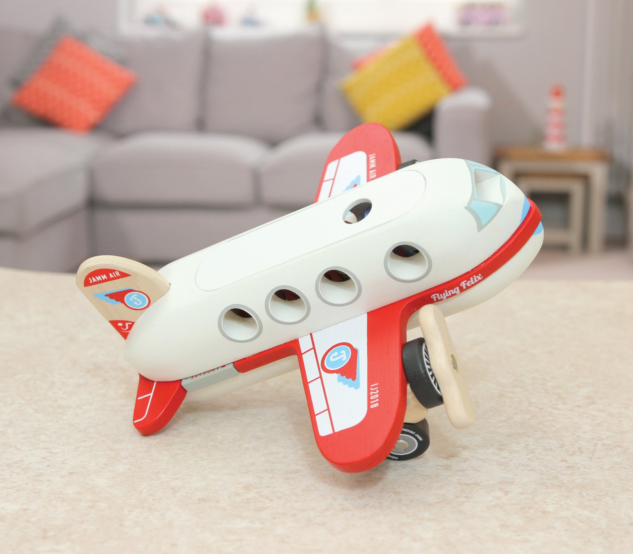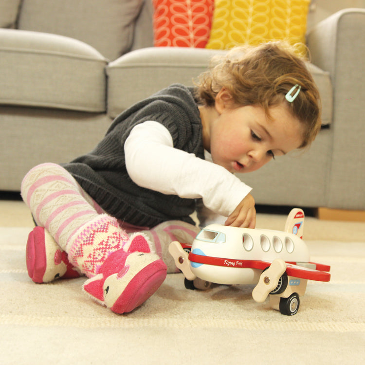 IIJ8062 Flo the UFO is a retro wooden toy made from sustainable rubber wood and plywood. It has a solid and chunky design with a spinning saucer and two detachable,...